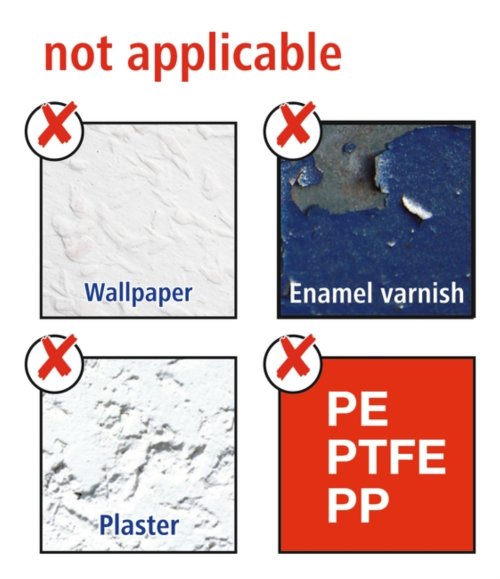• Nefunguje na tapetách, omietke a iných nepriľnavých povrchoch