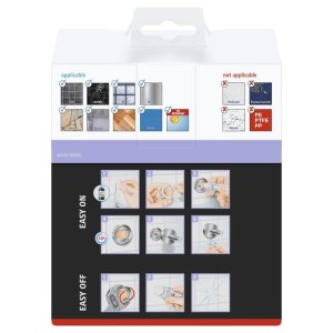 • drží na glazovaných dlaždiciach, kove, prírodnom kameni, mramore, betóne, dreve, skle a mnohých typoch plastov