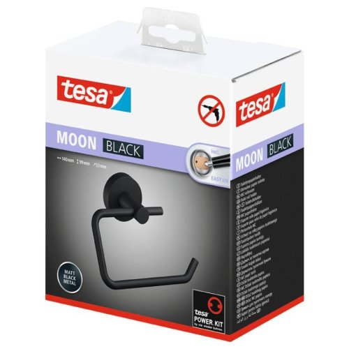 samolepiaci držiak toaletného papiera tesa® Moon Black je atraktívnym kúpeľňovým doplnkom technológie tesa® Power.Kit - univerzálne montážne riešenie pomocou lepidla drží na glazovaných dlaždiciach, kove, …