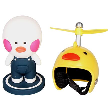 Štýlovo vyzerajúca dekoračná kačička Duck vykúzli úsmev každému dieťaťu. Postavička s výškou 9 cm ozdobí každú poličku, stôl alebo palubovku auta. Vďaka nalepovaciemu štítku na spodnej časti postavičky, môžete kačičku pevne pripevniť na spomínané miesta. Postavičke môžete zložiť alebo nasadiť helmu s vrtuľou. Helma je s motívom klasickej kačičky. Nazbierajte celú sadu kačičiek, ktoré nájdete v našej širokej ponuke. Nie je vhodné pre deti do 6 rokov. Parametre: rozmery: 9 x 4 cm hmotnosť: 56 g materiál: PVC, ABS