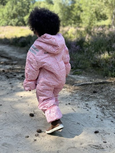 • lepšie odoláva zhoršeným poveternostným podmienkam Kombinéza je vybavená dlhým zipsom (končí na chrbte), čo uľahčuje rýchlu výmenu plienky. Kombinéza má špeciálne manžety na rukávoch a nohách. Môžete ich použiť v závislosti od počasia a pohodlia.