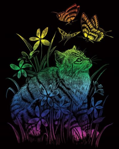 Škrabacie obrázky prebúdzajú kreativitu a nadšenie a nielen malých výtvarníkov zamestnajú na dlhé hodiny. Papier je potiahnutý čiernou vrstvou skrývajúcou podklad s dúhovým efektom.