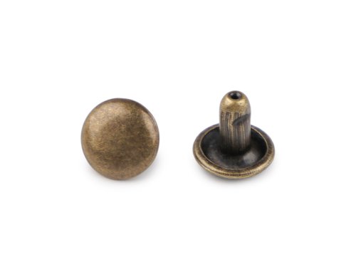 Obojstranné kovové nity sa skladajú z dvoch častí. Na ich aplikáciu je potrebný pistón a lis, ktorý nájdete pod kódom 070241 alebo 790770. Nity využijete na výrobu kabeliek, opaskov, peňaženiek a pod. Neslúži iba ako ozdoba, ale jedná sa o nity, ktorými môžete upevniť vrstvy materiálu k sebe.