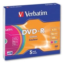 DVD-R Verbatim, farebné, slim box 5 ks