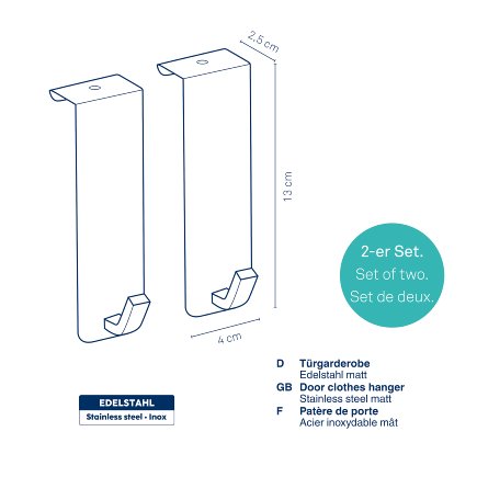 Dverný vešiak jednohák Colgar nerezová oceľ strieborná matná sada 2 ks 13,0x4,0x2,5cm KL-22227
