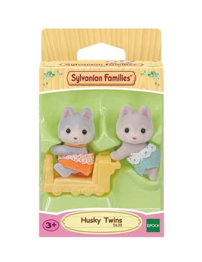 Sada Dvojičky Husky obsahuje figúrky bábätka Amber (sediaci) a Jeremyho (plazí sa) spolu s vozíkom (vláčik). Amber má šedú srsť a Jeremy hnedú. Na vozíku môže jazdiť ktorékoľvek z dvojčiat Husky (sediace alebo plaziace). Postavičky majú otočné hlavy. Skombinujte s Rodinou Husky a sadou Tandemový bicykel pre Husky súrodencov (oboje sa predávajú samostatne) pre zábavu s celou Husky rodinou. Vozík môžete tiež pripojiť k saniam sady Rodina Husky alebo ku kočíkom iných dvojčiat (všetko sa predáva samostatne). Alebo ich skombinujte s ďalšími domami a nábytkom (predávajú sa samostatne) pre ešte zábavnejšie a nápadité hranie! Vek: 3+