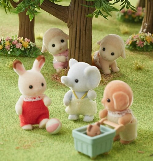 Sada Dvojičky ovečky. Ich rodinka obsadila tretie miesto vo voľbách Sylvanian Family Election 2020! Obsahuje ovčie dvojčatá Seana a Zhonu (sediace a plaziace sa) a vozík. Na vozíku môže jazdiť ktorékoľvek z dvojčiat oviec (sediaci alebo plaziaci). Postavičky môžu otáčať hlavou. Kombinujte s ovčou rodinkou a ovčím bábätkom (oboje sa predávajú samostatne) pre zábavu s celou ovčou rodinkou. Alebo ich skombinujte s ďalšími domami a nábytkom (predávajú sa samostatne) pre ešte zábavnejšiu a nápaditú hru. Stimuluje u detí imaginatívne hranie rolí. Vek: 3+