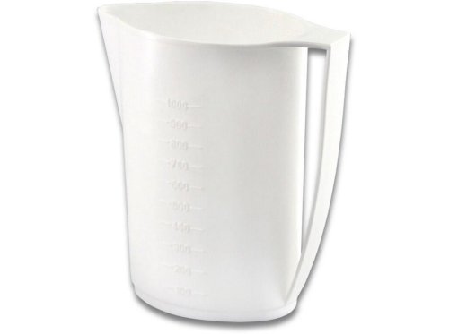 PLastový džbánok pre mlieko balené v sáčku. Džbánok s mierkou, výlevkou a uchom.
