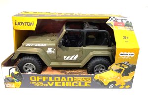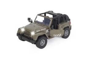 Džíp v mierke 1:10 predstavuje detailne prepracovaný model terénneho vozidla, ktorý je k dispozícii v troch farebných variantoch – červenej, žltej a khaki zelenej. Vozidlo je navrhnuté s dôrazom na realizmus, čo dokazujú otváracie dvere, robustná konštrukcia a výrazné terénne pneumatiky, ktoré podčiarkujú jeho off-road charakter. Interiér džípu je čierny a detailne spracovaný, doplnený o volant a sedadlá, čo prispieva k celkovému dojmu skutočného terénneho auta.