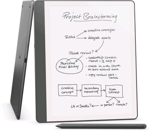 Nový Kindle Scribe - Kindle a notebook, všetko v jednom. Prepracovaný zapustený predný displej s jednotnými bielymi okrajmi a vylepšeným perom Premium Pen, ako by ste písali na papier. Píšte do kníh ako inšpirácia – Začnite písať priamo na stránku a Active Canvas vytvorí priestor pre vaše poznámky. Vstavaný notebook – Vytvárajte poznámky zo schôdzok a zoznamy úloh alebo denník na jednom mieste. Preveďte ručne písané poznámky na text a pošlite ich e-mailom sebe alebo svojim kontaktom. Súhrny notebookov – Ľahko zhrňte a upresnite svoje poznámky pomocou nových vstavaných nástrojov pre notebooky AI. Čítajte a píšte za akéhokoľvek svetla – 10,2" neoslňujúci displej s predným podsvietením 300 ppi je určený na čítanie a písanie kedykoľvek, vo vnútri aj vonku. Žiadne rušivé vplyvy – Zamerajte sa na svoje myšlienky pomocou zariadenia špeciálne navrhnutého na čítanie, písanie a označovanie dokumentov. nastavovať ani nabíjať, stačí začať písať. Vylepšený dizajn, tlačidlo skratky a mäkká guma poskytujú dokonalého spoločníka pri písaní.