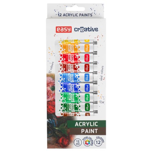 Akrylové farby z radu EASY Creative sú krycie farby s 12 intenzívnymi farbami. Ich hustá konzistencia a vysoká kvalita farbív zaručujú veľmi dobré krytie maľovaných povrchov – najčastejšie papier alebo kartón.