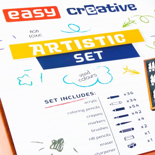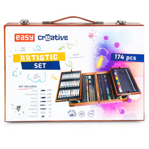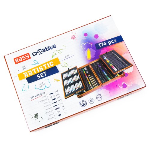 Sada Easy 174 ks je pokladnicou pre všetky kreatívne duše. Ponúka ohromujúcu 174 kusov kvalitných výtvarných potrieb pre maľovanie, kreslenie a experimentovanie s farbami.