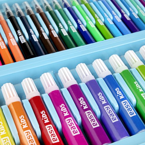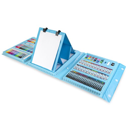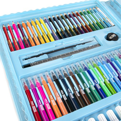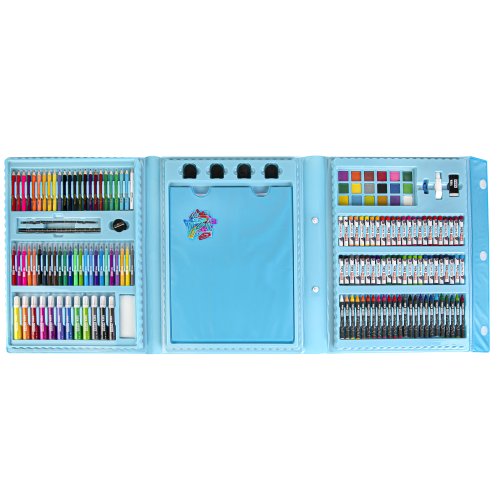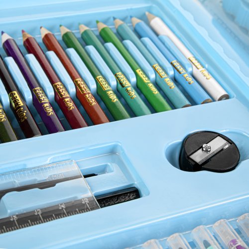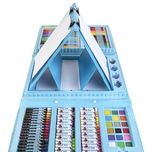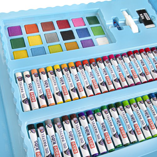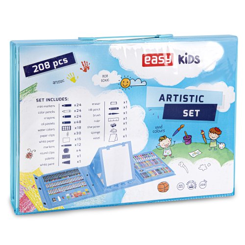 Táto sada je snom každého malého umelca. Modrý kufrík so stojanom ukrýva 208 kusov výtvarných potrieb, s ktorými sa váš syn, vnuk alebo synovec ponorí do sveta fantázie a farieb.
