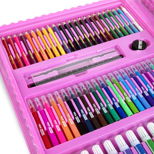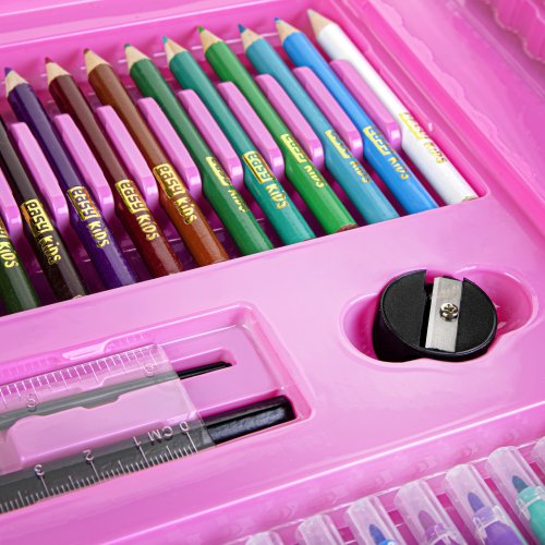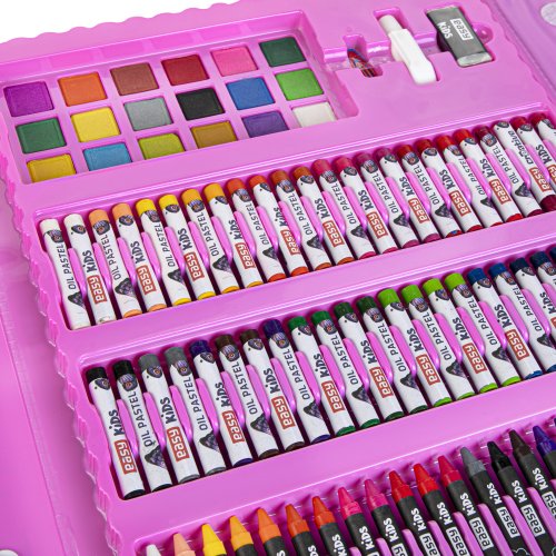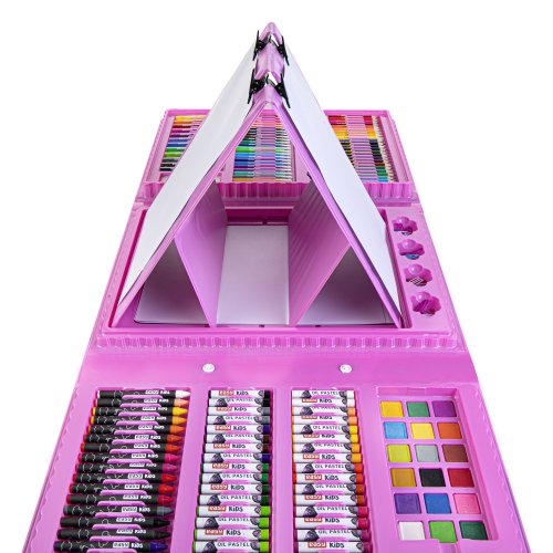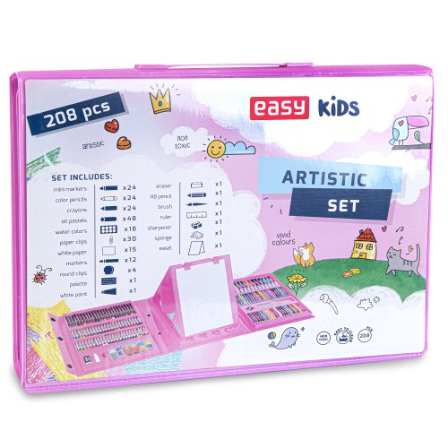 Táto sada je snom každej malej umelkyne. Ružový kufrík so stojanom ukrýva 208 kusov výtvarných potrieb, s ktorými sa vaša dcéra, vnučka alebo neter ponorí do sveta fantázie a farieb.