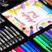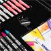 - Pre každú techniku: 17 mini pasteliek a 24 fixiek pre detailné kresby, 18 mini fixiek pre jemné linky a 4 štetce pre maľovanie s akvarelmi.