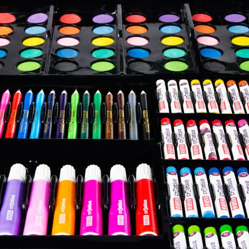- Farebná explózia: 48 žiarivých vodových farieb, 55 olejových pastelov, 24 voskoviek a 32 kried pre maľovanie na chodník aj papier.