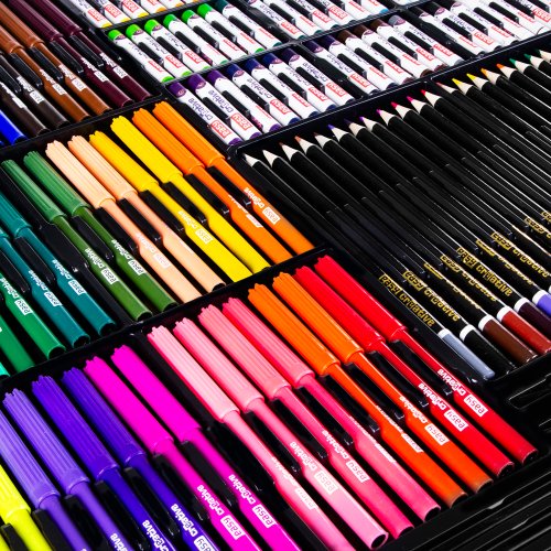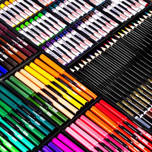 - Ohromujúce množstvo pomôcok: 48 jumbo fixiek a 48 klasických fixiek pre výrazné kresby, 72 pasteliek pre detailnú prácu a 60 olejových pastelov pre jemné tieňovanie.