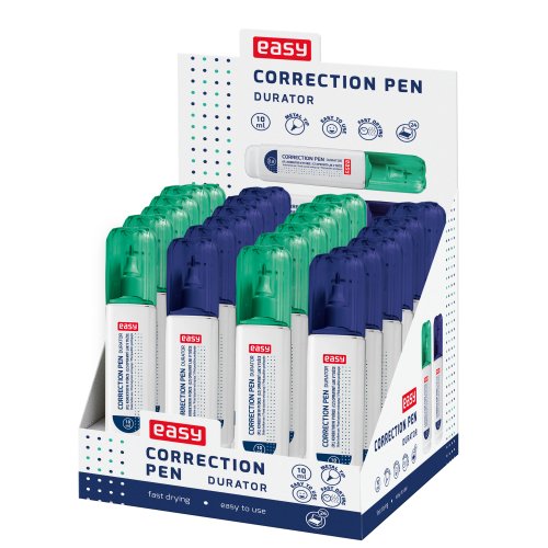 S korekčným perom EASY DURATOR ľahko a čisto opravíte text napísaný prepisovačkou, linerom alebo gélovým perom. Presná a tenká koncovka umožňuje korekciu aj jednotlivých písmen alebo znakov s maximálnou precíznosťou. Korekčná kvapalina rýchlo schne a dobre kryje , takže môžete ihneď písať nový text.