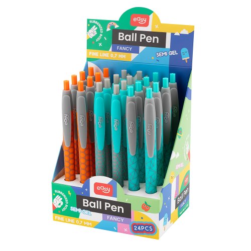 V sérii pier EASY FANCY sa nachádza špeciálna náplň so semi-gélovou konzistenciou v klasickej, modrej farbe. Táto náplň zaisťuje pohodlné vedenie perá po papieri pri uchovaní parametrov bežnej náplne. Pevná koncovka umožňuje vykonávanie tenkých, presných čiar.