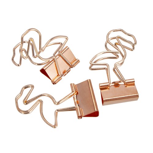 - 3 kancelárske sponky v tvare plameniaka: Už žiadne nudné kancelárske sponky! Tieto roztomilé sponky v tvare plameniakov spoľahlivo udržia vaše dokumenty pohromade a zároveň im dodajú šmrnc.
