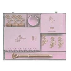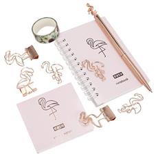 Táto rozkošná sada v sebe spája eleganciu, funkčnosť a štipku exotiky. Obsahuje všetko, čo potrebujete na každodenné písanie, plánovanie a organizáciu, a navyše s motívom krásnych plameniakov, ktorí vám zaručene zdvihnú náladu.