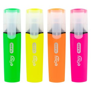 Plochý tvar a ideálna hrúbka zvýrazňovačov EASY FLASH zaručujú pohodlné držanie. Viečko zabraňuje vysychaniu náplne a chráni pred znečistením. A vďaka klipu na viečku môžete zvýrazňovač jednoducho pripevniť k zošitu alebo knihe. Zvýrazňovače sú dodávané v praktickom priehľadnom obale, ktorý uľahčuje ich uchovávanie a prepravu.