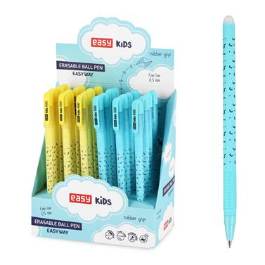 Guľôčkové pero EASYWAY používa špeciálny atrament, ktorý sa dá ľahko vymazať gumou umiestnenou na konci pera. Pevná koncovka zaisťuje tenkú a precíznu čiaru (0,5 mm). Mäkký, pogumovaný korpus zaručuje pohodlie aj pri dlhodobom písaní. Viečko vo farbe tela chráni náplň pred vysychaním a znečistením.