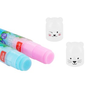 Táto netoxická lepiaca tyčinka s pevným lepidlom PVP s hmotnosťou 15 g je ideálna pre všetkých malých kreatívcov. Už žiadne rozliate lepidlo a lepkavé prsty! Vďaka štyrom pastelovým farbám a viečku s hlavou zvieratka (4 rôznych vzorov) si ju deti zaručene zamilujú a lepenie sa stane zábavou.