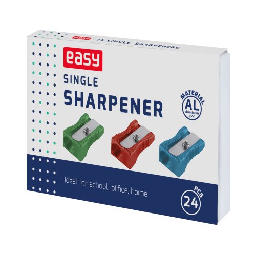 jednodielne strúhadlo EASY je vyrobené z odolného materiálu - hliník. Použitý materiál zaručuje vysokú odolnosť a dlhú životnosť strúhadla. Tento model jednodielneho strúhadla EASY je ideálny na ostrenie grafitových ceruziek a pasteliek so štandardným priemerom 8 mm.
