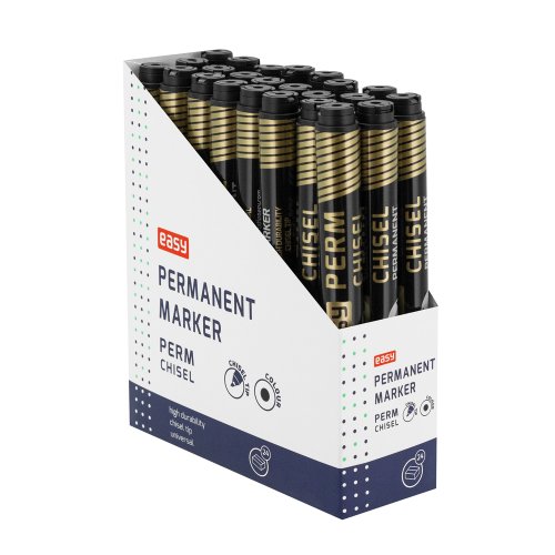 Čierny permanentný popisovač EASY PERM CHISEL sa hodí všade tam, kde sú dôležité dlhodobé efekty.