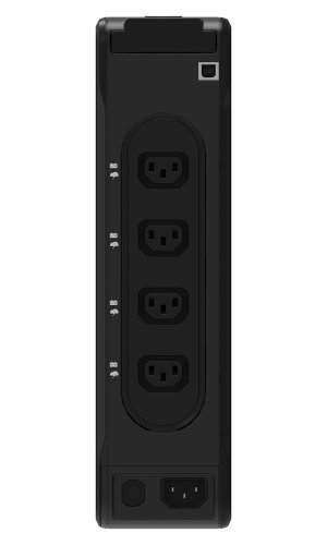 Zdroj je vybavený 4 zásuvkami s ochranou proti prepätiu a záložným napájaním a 4 zásuvkami iba s ochranou proti prepätiu podľa medzinárodných noriem IEC. Vďaka elegantnému a kompaktnému dizajnu sa zdroj hodí do akéhokoľvek prostredia - môžete ho umiestniť horizontálne, vertikálne alebo s voliteľným príslušenstvom aj na stenu či do racku.