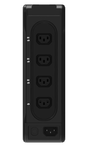 Zdroj je vybavený 3 zásuvkami s ochranou proti prepätiu a záložným napájaním a 1 zásuvkou iba s ochranou proti prepätiu podľa medzinárodných noriem IEC. Vďaka elegantnému a kompaktnému dizajnu sa zdroj hodí do akéhokoľvek prostredia - môžete ho umiestniť horizontálne, vertikálne alebo s voliteľným príslušenstvom aj na stenu či do racku.