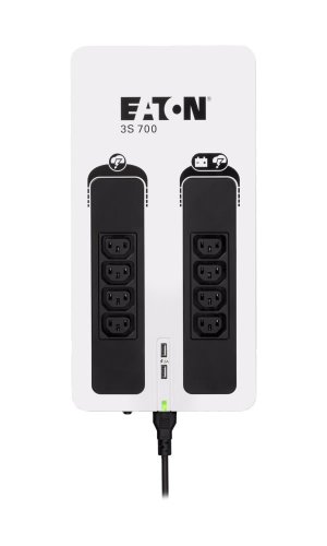 UPS Eaton 3S pomáha chrániť vašu výpočtovú techniku v prípade výskytu nežiaducich javov a udalostí, ako sú atmosférické výboje, búrky, preťaženie rozvodnej siete, poruchy a živelné udalosti, spôsobujúce bez predchádzajúceho varovania výpadky napájania z elektrorozvodnej siete. tiež chráni telefónne, širokopásmové a Ethernetové pripojenie proti prepätiu. Softvér na odstavenie umožňuje automatické uloženie rozpracovaných úloh a ukončenie vašich aplikácií bez straty dát vďaka prepojeniu USB portom .