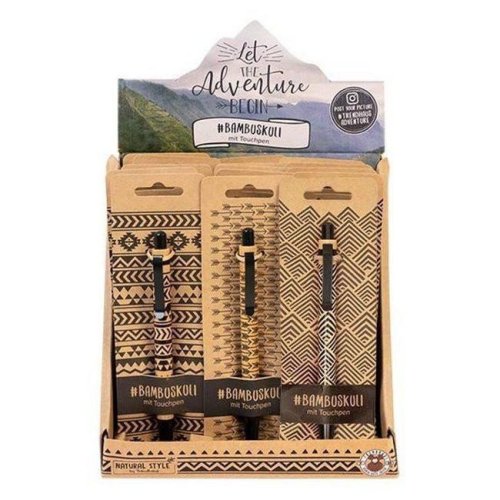 Skvelé bambusové guľôčkové pero s matnou čiernou kovovou sponou a integrovaným dotykovým perom. Farba písania: čierna K dispozícii v 3 rôznych prevedeniach. Dĺžka: 14.1 cm Priemer: 1.5 cm