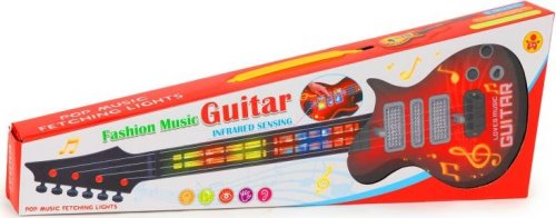 Má vaše dieťa rado hudbu a chcelo by sa stať skutočným Rockmanom? Táto elektrická gitara v ňom vzbudí skutočnú vášeň a bude vhodným darčekom pre každého malého hudobníka. Gitara má 4 nylonové struny. Tlačidlami je možné aktivovať rôzne melódie a zvuky . Farebné LED osvetlenie je posledným, ale v neposlednom rade dôležitým prvkom tejto jedinečnej gitary.