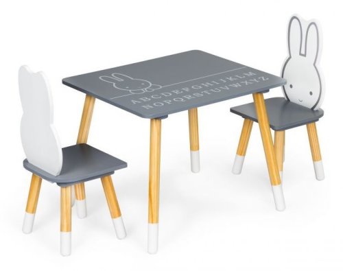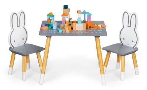 Súprava dvoch stoličiek a stolíka s motívom roztomilého zajačika. Špecifikácia produktu: