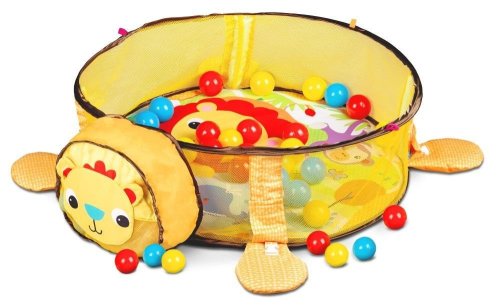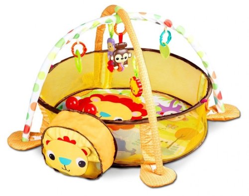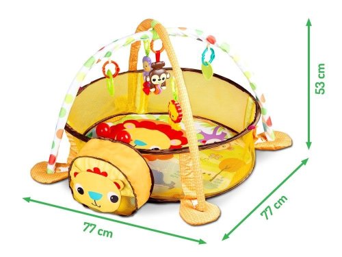 Vzdelávacia hracia deka Lev zabaví vaše dieťatko na dlhé chvíle. Pestrofarebné prevedenie a výber závesných hračiek výrazne stimulujú zmysly a motorické schopnosti. Vďaka svojim kvalitám ďalej rozvíja hmat, zrak, koordináciu a pohyblivosť prstov. Výhody výrobku - vhodné pre deti od narodenia - látková ohrádka - dve odnímateľné hrazdičky so štyrmi hračkami (možno odňať) - 30 farebných loptičky s úložným priestorom - na dotyk príjemný kvalitný materiál, možnosť prania Parametre - rozmery 77 x 77 x 53 cm - priemer deky 68 cm - výška sieťky, záhradky, 20 cm - váha 2,3 kg