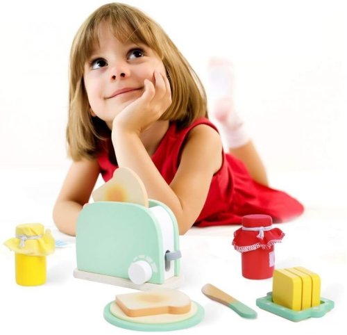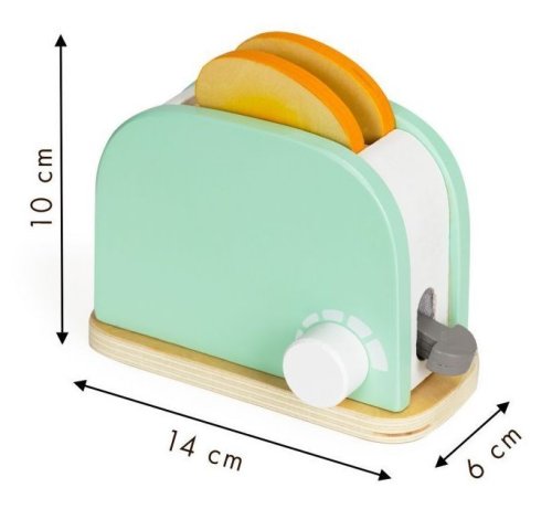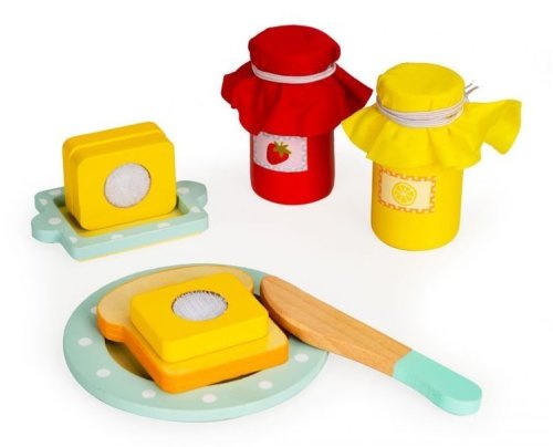 Drevený hriankovač má špeciálne tlačidlo, ktoré po jeho stlačení zasunie toast do hriankovača. Vedľa tlačidla sa nachádza aj otočný gombík, ktorý vám umožní nastaviť teplotu tak, aby bol sendvič dokonale prepečený. Súčasťou balenia je aj nôž, maslo, ktoré možno krájať, tanier a 2 druhy marmelády.