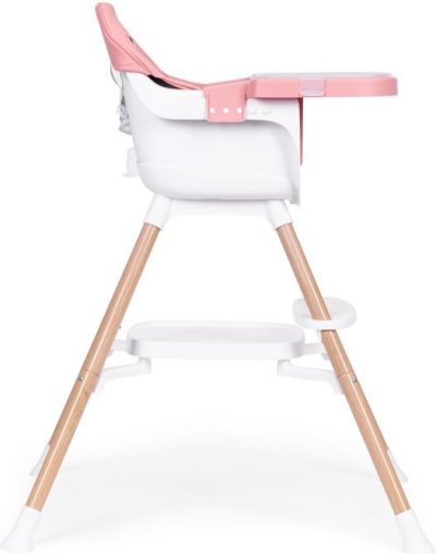 pohodlné sedadlo so zábranou proti zosunutiu, 5-bodové bezpečnostné pásy, stabilná a ľahká konštrukcia, protišmykové gumové kryty na nohách stoličky chránia podlahu pred poškriabaním, praktická podnožka na nohy, polohovateľný plastový pultík s odnímateľnou táckou, nosnosť max 15 kg.