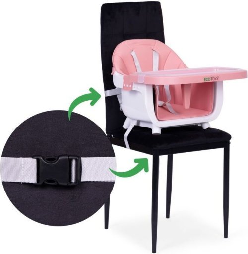 Jedálenská stolička 2v1 od značky ECOTOYS je multifunkčné riešenie pre deti od 6 do 36 mesiacov. Ponúka dve možnosti použitia: ako vysoká jedálenská stolička alebo ako sedátko pripevnené k bežnej stoličke. Toto praktické riešenie ocení každý rodič počas rodinných výletov alebo cestovania. Výhody stoličky: