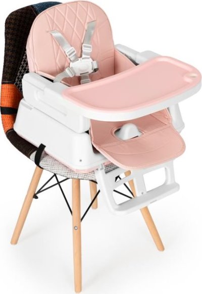 Táto moderná jedálenská stolička môže byť zostavená v troch variantoch - vysoká stolička, nízka stolička a sedák pripevnený ku klasickej stoličke. Výhody stoličky: