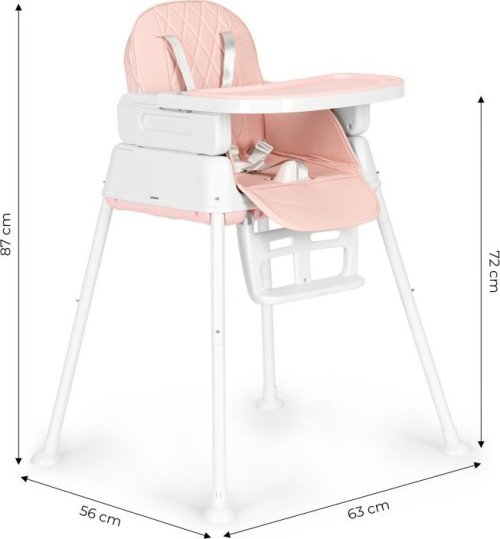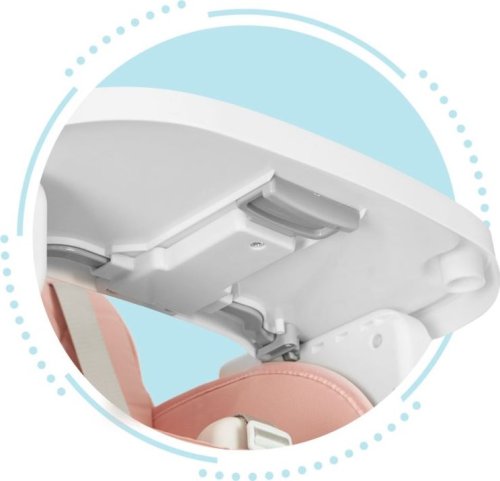 stabilná konštrukcia kovové nohy praktická opierka nôh odnímateľný a nastaviteľný plastový pult pohodlné sedadlo so zábranou proti zosunutiu 5-bodové bezpečnostné pásy odnímateľný poťah z ekokože protišmykové nôžky, ktoré navyše chránia podlahu pred poškriabaním ľahko skladovateľná, možno zložiť do kompaktnej veľkosti stoličku