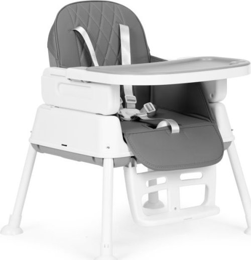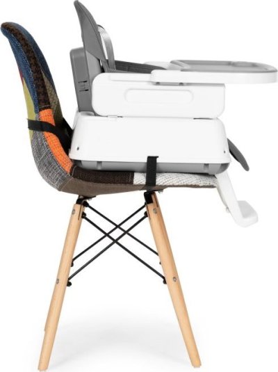 Táto moderná jedálenská stolička môže byť zostavená v troch variantoch - vysoká stolička, nízka stolička a sedák pripevnený ku klasickej stoličke. Výhody stoličky:
