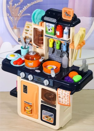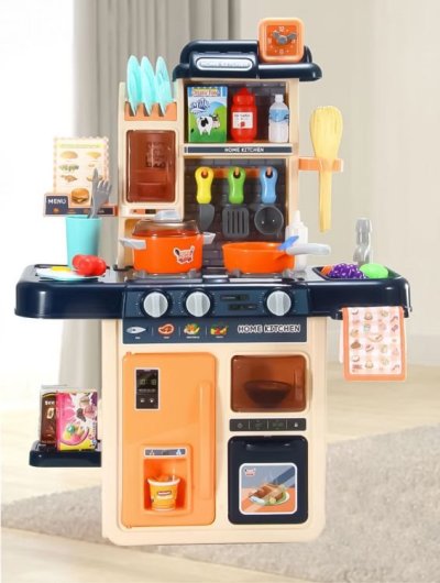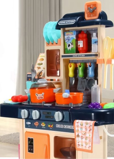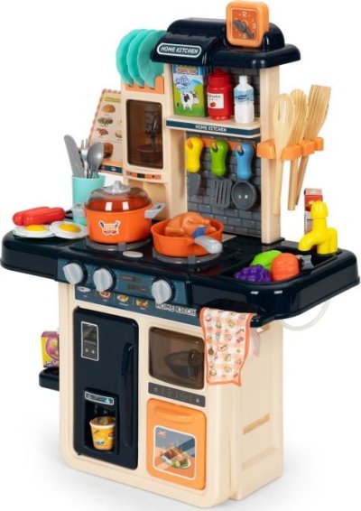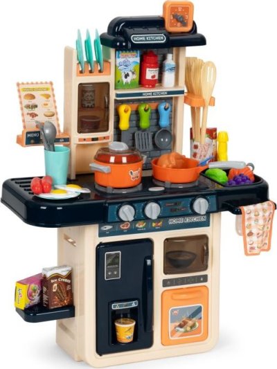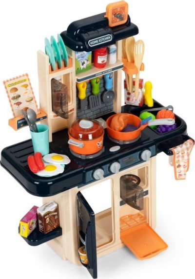 Zahráme sa na kuchára? Kuchynka pre všetky malé kuchárky a kuchára. Pozvite si svojich kamarátov a prichystajte im najrôznejšie dobrôtky. Po zapnutí horákov vydávajú kachle zvuk vriacej vody a horáky sú navyše osvetlené červenými LED diódami. Skvelým doplnkom je vyvíjač pary - stačí naplniť jeden z horákov vodou, položiť naň hrniec a po chvíli začne spod pokrievky vychádzať para. K dispozícii je drez, ktorý je možné naplniť vodou, pretože z vodovodného kohútika vyteká voda.