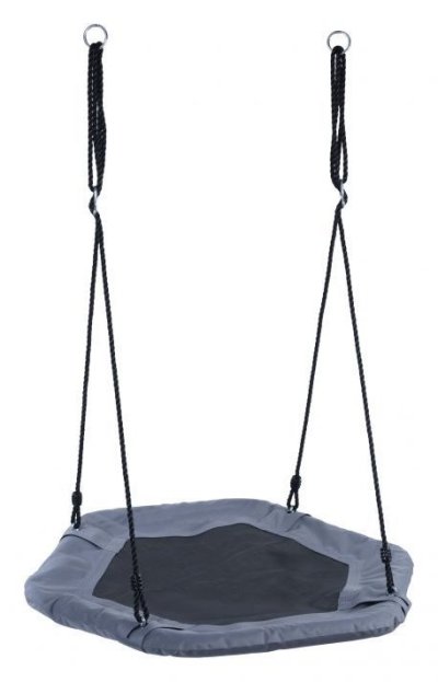 Šesťhranná hojdačka Čapí hniezdo v šedej farbe je ideálne pre vonkajšie aj vnútorné použitie a Vaše deti si ju zamilujú. Sedadlo hojdačky je vyrobené z vysoko kvalitného polyesteru, ktorý je odolný voči poveternostným vplyvom a opotrebovaniu. Pozinkovaný rám je chránený penovým polstrovaním tak, aby bolo Vaše dieťa v bezpečí a zároveň malo pohodlie pri hojdaní. Čapí hniezdo má priemer sedadla 92 cm a maximálnu nosnosť 100 kg . Dve závesné laná sú výškovo nastaviteľné, a to až do 160 cm. Hrúbka závesných lán je 1 cm. Hojdačka sa zavesuje za kovové krúžky, ktoré sú prevlečené na závesných lanách. Vhodné pre deti od 3 rokov.
