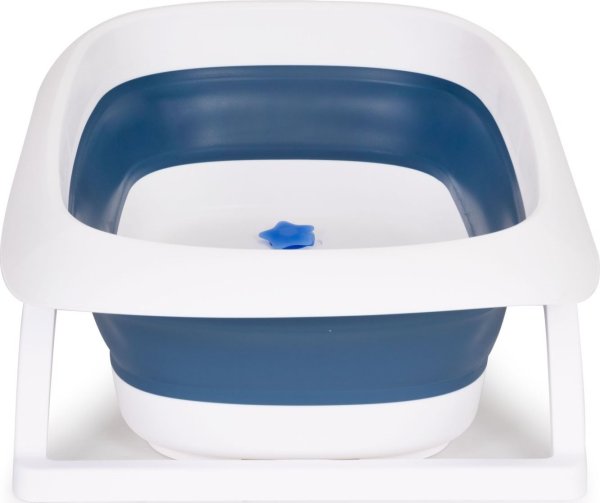vhodná do kúpeľne alebo na akýkoľvek rovný a stabilný povrch, vybavené zátkou na ľahké vypúšťanie použitej vody bez nutnosti zdvíhania vaničky, teplomer zabudovaný v zátke - ak je voda príliš horúca zátka zmení farbu, skladanie do kompaktnej veľkosti (možno uložiť do zásuvky, skrine alebo zavesiť na stenu), ľahké prenášanie, vhodná na cesty. protišmykové nožičky