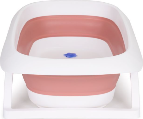 vhodná do kúpeľne alebo na akýkoľvek rovný a stabilný povrch, vybavené zátkou na ľahké vypúšťanie použitej vody bez nutnosti zdvíhania vaničky, teplomer zabudovaný v zátke - ak je voda príliš horúca zátka zmení farbu, skladanie do kompaktnej veľkosti (možno uložiť do zásuvky, skrine alebo zavesiť na stenu), ľahké prenášanie, vhodná na cesty. protišmykové nožičky
