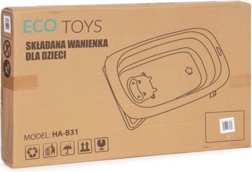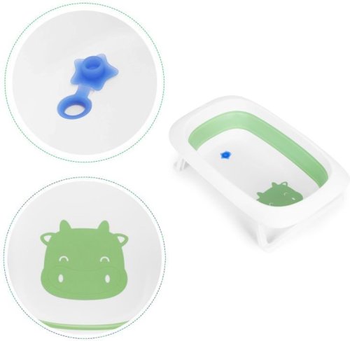 vhodná do kúpeľne alebo na akýkoľvek rovný a stabilný povrch, vybavené zátkou na ľahké vypúšťanie použitej vody bez nutnosti zdvíhania vaničky, teplomer zabudovaný v zátke - ak je voda príliš horúca zátka zmení farbu, skladanie do kompaktnej veľkosti (možno uložiť do zásuvky, skrine alebo zavesiť na stenu), ľahké prenášanie, vhodná na cesty. protišmykové nožičky
