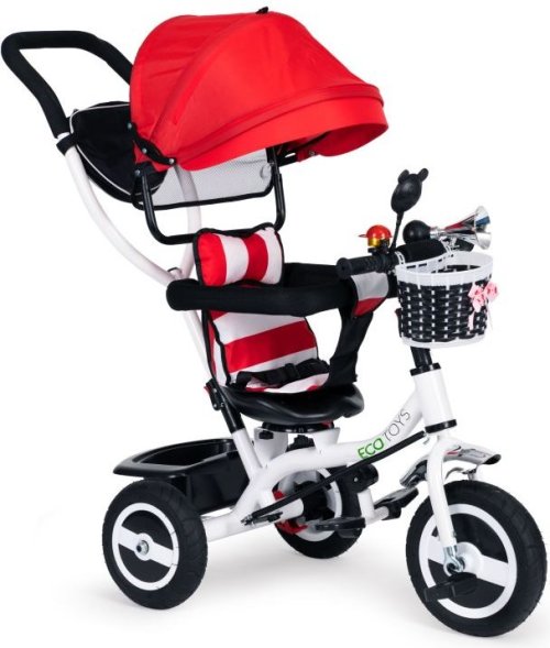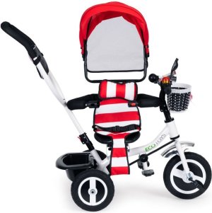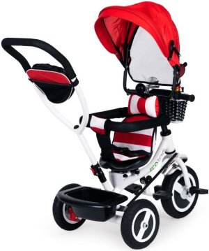 Bezpečná trojkolka s vodiacou tyčou a strieškou pre deti od 12 mesiacov. Trojkolku je možné používať ako vozík, kedy môžete dieťa iba tlačiť pomocou vodiacej tyče. Nohy dieťaťa sú pritom umiestnené na bezpečnostných stúpačkách. Výhody trojkolky: