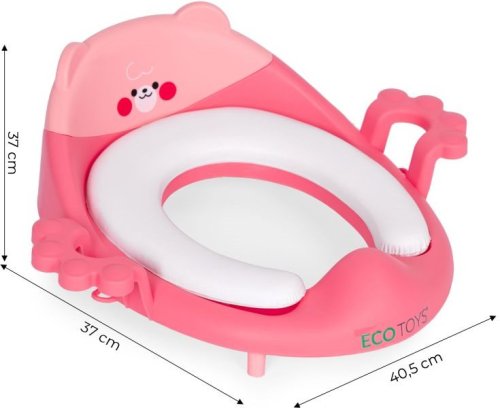Odolná a ľahko čistiteľná konštrukcia, mäkký vankúš pre maximálne pohodlie, sedátko je vybavené praktickými madlami a protišmykovými podložkami, univerzálna veľkosť pasuje na všetky typy toaliet, vysúvacie prvky zaručujú stabilnú montáž, jedinečný dizajn a tvar produktu robia sedátko atraktívnym pre deti, čo ich motivuje k samostatnosti.